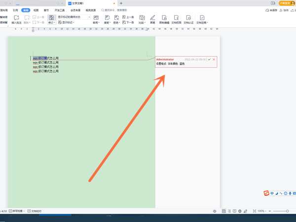 2、处理需要修改的文字,然后即可在右侧看到修订记录了。