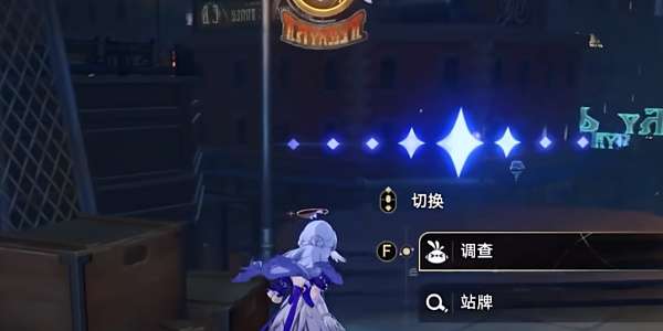 2、出锚点后王背后走,来到平台上,选择调查站牌,交付代币。