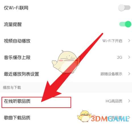 3、点击在线听歌品质。