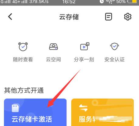 找到自己的设备,点击并打开,在其他开通方式里面,点击云存储卡激活。
