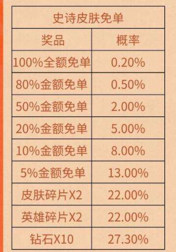 王者荣耀皮肤免单概率多少?王者荣耀2022年1月21日开启了皮肤免单活动,很多小伙伴不知道在哪里参加这个活动,想知道皮肤免单概率多少,下面就为大家介绍一下。