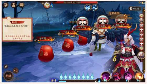 使用特殊技能,攻击挑战中携带正确灯谜答案的达摩