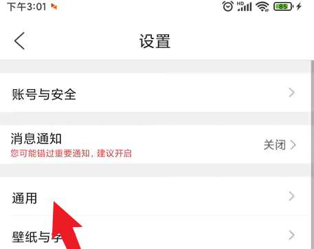 进入设置后,点击通用的一项。
