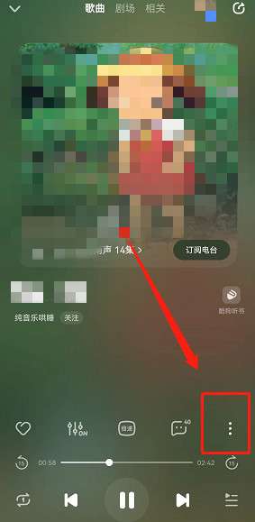 1、首先,在歌曲播放页面点击右下方竖列三点。
