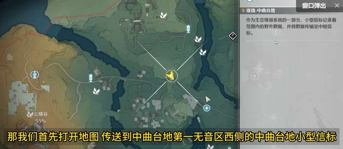 1、首先打开地图 传送到中曲台地第一无音区西侧的中曲合地小型信标的位置;
