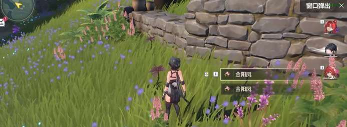 2、达到之后落地后向西方向起跳,在树下两个高度的阶梯上分别有两株花花;