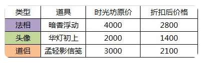 本次更新为道友们带来了新的时光坊商品,还是按照之前的上新规则,7天7折~