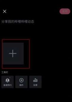 打开哔哩哔哩,点击下方【+】,点击【发动态】。