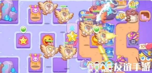 1、本关主要使用的炮台有烟花、双向炮和电塔。