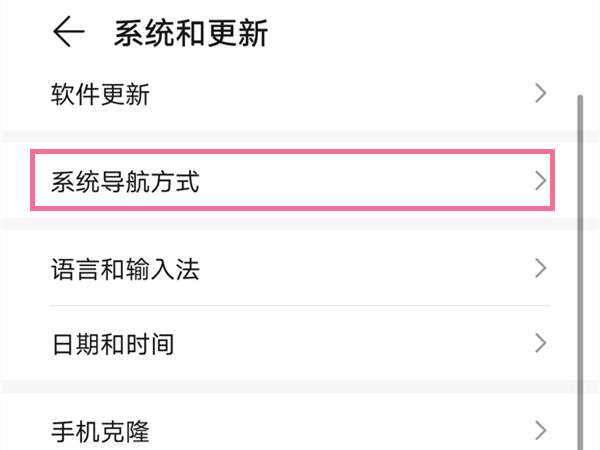 2、点击系统导航方式。