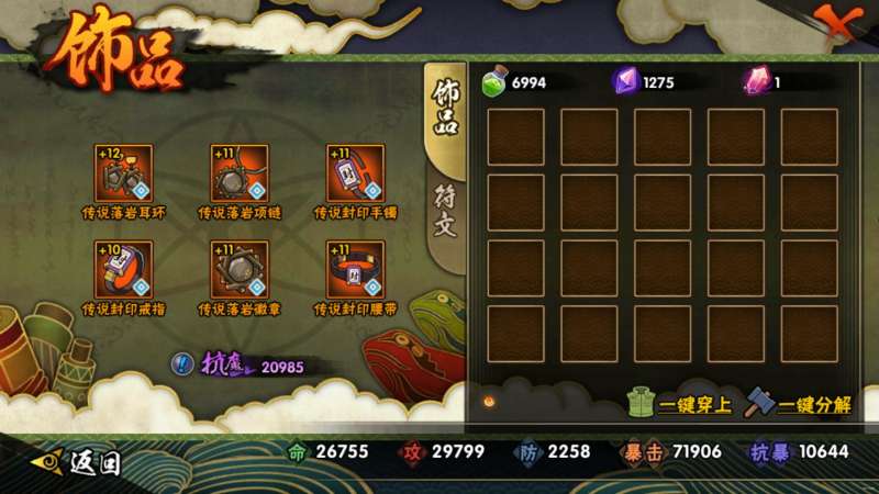 但其实除了紫色的赤魂饰品以外,橙色以下的饰品全部都是狗粮,就是分解后用来强化其它好饰品的。这里简单讲讲为什么要留紫色赤魂饰品,它的作用就是用来刷保护符,因为橙色饰品才是真正的开始。