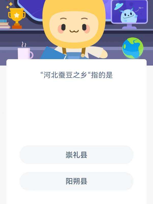 2022支付宝蚂蚁新村7月4日的题目为:河北蚕豆之乡指的是?崇礼县还是阳朔县呢?可能还有很多小伙伴都不太清楚。下面小编就为大家带来了正确答案分享,希望能帮助到你。