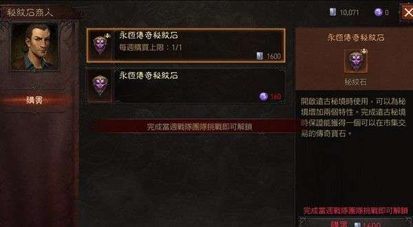 然后在钥石商人处可以解锁闪光强化不朽钥石的购买,这个东西1600。可以在不朽秘境中使用,必定掉落符文和可交易的传奇宝石。
