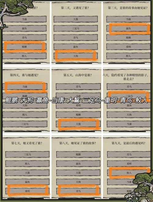 《江南百景图》游戏中聆听风的故事走出迷雾顺序是鲲鹏,天狗,赢鱼,当康,大鵹,三足乌,重明,青鸟,鲛人,那么今天小编就给大家介绍一下江南百景图聆听风的故事走出迷雾顺序攻略,有需要的小伙伴不要错过了。