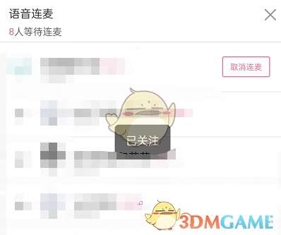 3、关注后,等待主播同意连麦即可,不想连线的话点击取消连麦即可。