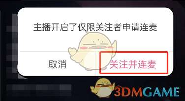 2、有些主播可以直接连线。有些主播设置关注后才能连线,我们就先需要进行关注。点击关注并连麦。