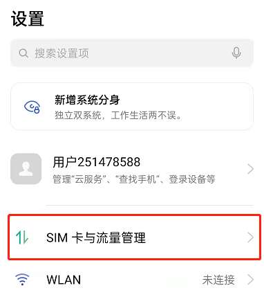 3、在SIM卡与流量管理页面,选择一张需要取消HD通话的SIM卡。