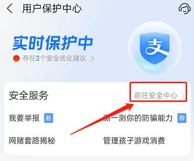 2、点击前往安全中心。