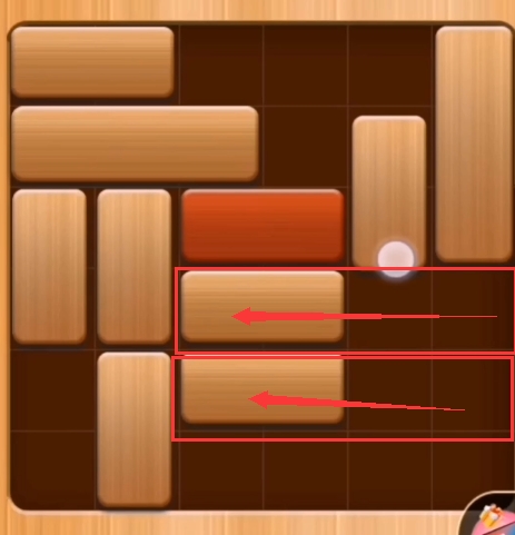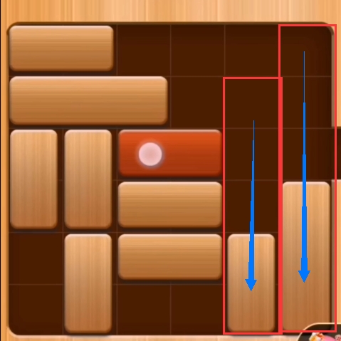 第一步:将第四排、第五排的横向积木分别往左边推(如图:)