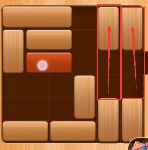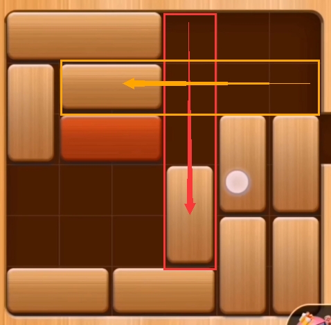 第二步:将第四列的竖立的积木往下推,并把第二排的横向往左边推(如图:)