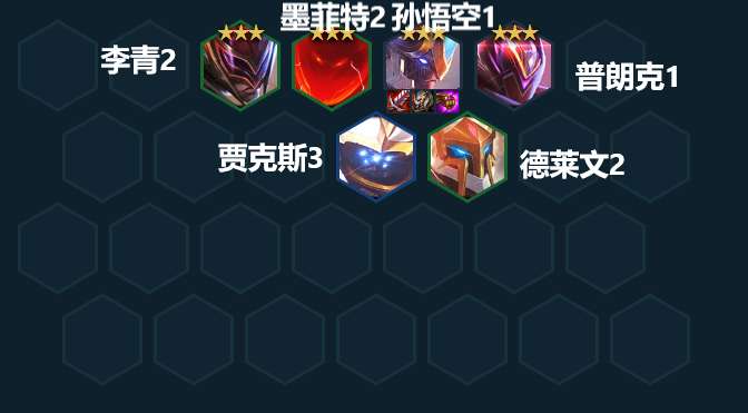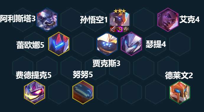 然后我们就需要在3超级英雄的基础上补出德莱文、猴子、贾克斯,组成3超级英雄3战斗机甲2斗士的阵容。这里建议先存利息到5人口再慢D,如果在4人口d很难出贾克斯。升6人口之前可以all in一波,目标是抽出3星猴子+其他全员2星+1个贾克斯,达成这个目标就可以升6了。