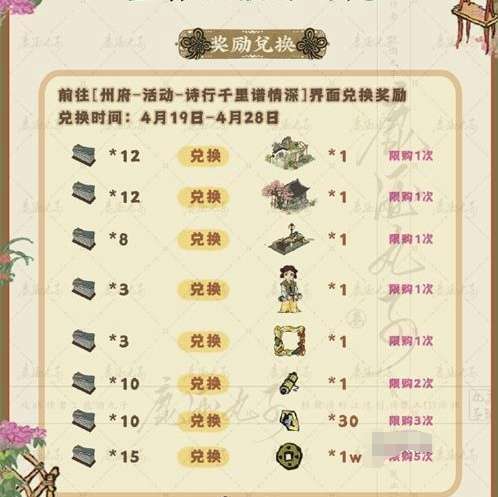 1、江南百景图墨香飘散作诗趣活动的主要玩法就是收集材料,以此来兑换活动好礼。