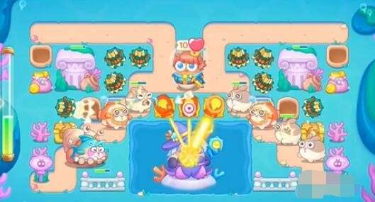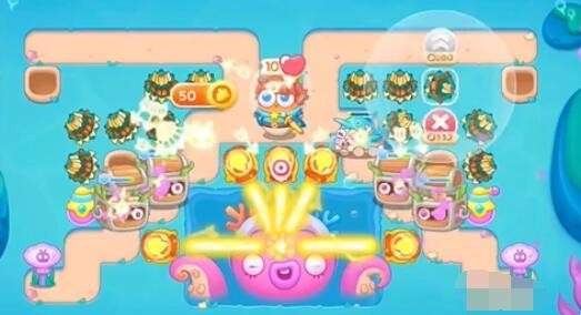4、在萝卜下方建造三个满级燃烧瓶,集中火力攻击章鱼兔。