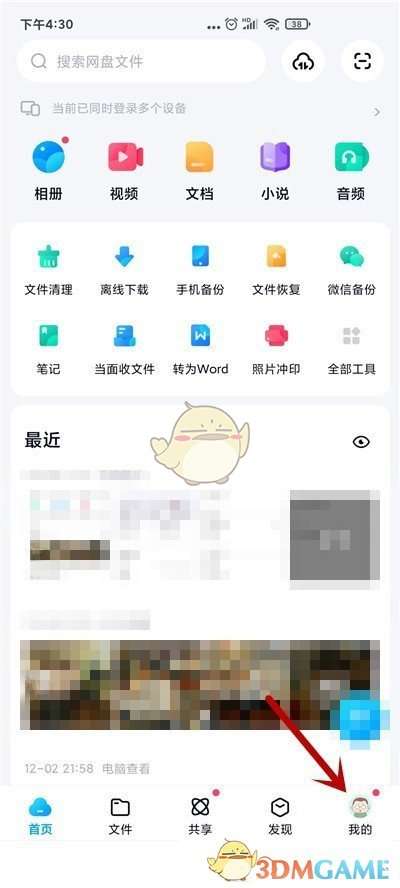 1、首先在百度网盘里点击右下角的【我的】。