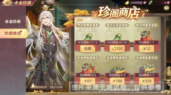 每日元宝赤金匙:内含赤金榫匙*1,活动期间每日限购40次。