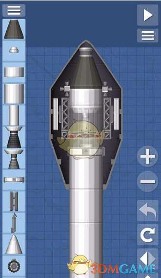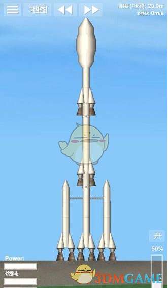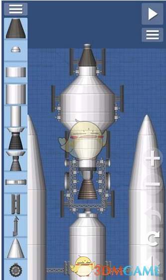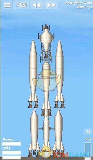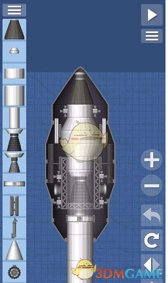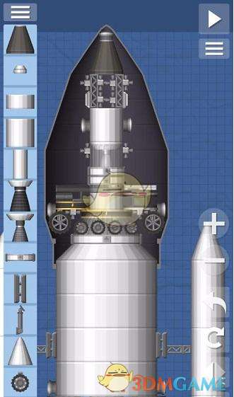 这个火箭是比较简单的火箭样式,里面搭载了一个小型的卫星,超长的燃料箱以及两个辅助的燃料箱提供更多的燃料补给;