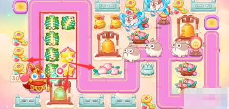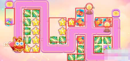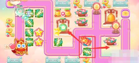 2、开始的时候放置一个满级鱼刺,开始清理下面玉壶,玉壶打掉之后放置一颗星星,一个清怪一个清理障碍物。