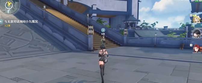 3、接着跟着任务指引与无旅对话询问小九情况;