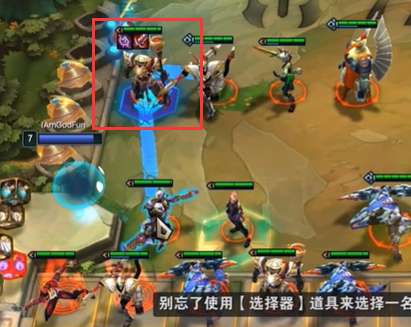 ②给贾克斯使用“至尊机甲选择器”,随后你会看到贾克斯身上有两道连线。