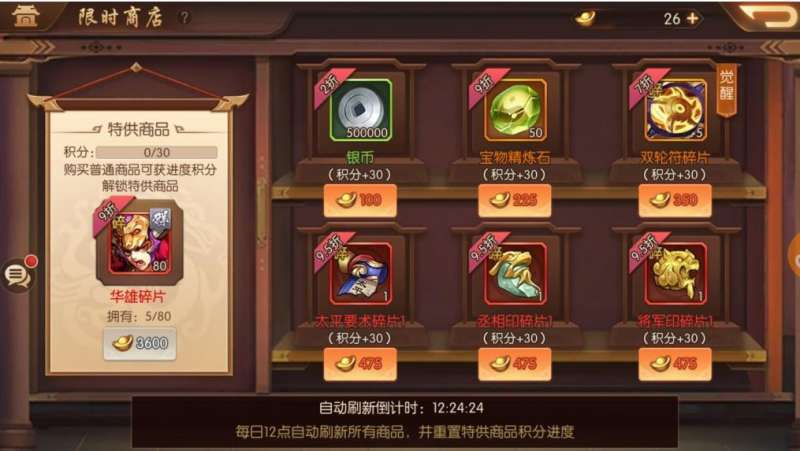在角色等级比较低的早期,建议大家在商店里面多兑换一些精炼石,因为他的高性价很高是提升装备的重要资源。对于那些微氪或者不氪金的玩家来说,,尽管在资源有限的情况下,可以兑换一些觉醒丹用于提升武将实力。不过相比于红将碎片来说,小编还是比较推荐大家尽可能多的去兑换红将碎片。因为红将是高品质武将的代表,对于平民玩家而言,通过兑换红将碎片是获取顶级武将的有效手段。所以建议玩家优先兑换自己阵容所需的红将碎片,以加速武将的收集和养成过程。