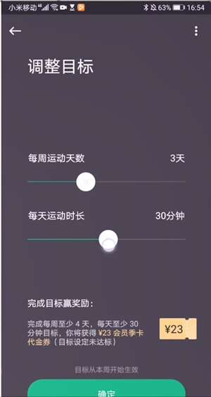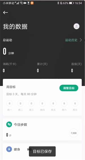 3、选择每周运动天数和时长再点击确定即可设置成功,这时用户每周每天的运动数据都已经被记录下来。