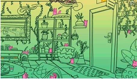 3、第三步:接着就是我们通过门把手打开的房间的猫的位置了。下图中是这个房间的猫,我们跟着一步一步点就可以了。全部找出来之后我们这关就过了。