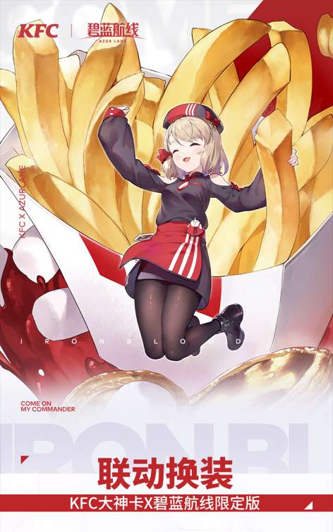 超神美味,相约碧蓝!指挥官,碧蓝航线 x 肯德基 联动第一弹开启! 7月5日至7月21日,肯德基大神卡碧蓝航线联名限定版 限时抢购!除碧蓝航线限定版卡面外,还可获得联动换装:Z23「薯条,以及笑容!」1套更多活动详情请见下图哦! “食”刻相伴,美味出击,就等你了!