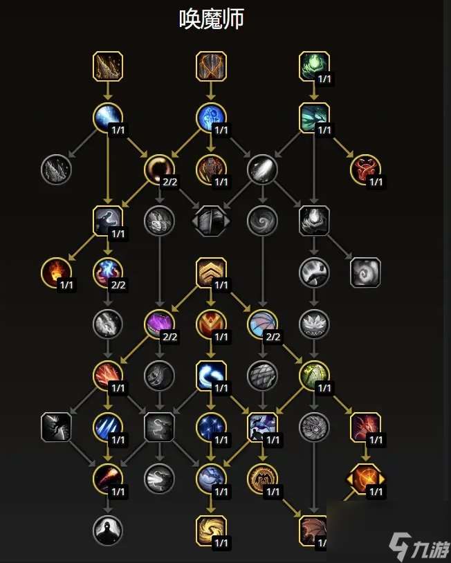 唤魔师职业天赋树路径选择:首先选择镇压和黑曜壁垒(黄),将剩余的4个所需点数花在上层部分,然后向下通往爆裂熔炉(白),开始填补天赋树的中间部分以提高生存能力和机动性(绿),在中段花费剩余的2个所需点数,然后向下通往天空霸主(蓝);唤魔师专精天赋树路径选择:首先获取关键法术黑檀之力和喷发,然后是我们的主要资源机制精华迸发,以及我们的第二个强化法术地壳激变(黄),将剩余的3个所需点花在上层部分,然后向下通往构造位点和巨龙协调(白),通过选择守护巨龙的青睐、熔火血脉和支持山崩眩晕组合的天赋来填充中间部分(这些天赋相当灵活)(绿),朝着丝缕交织和动量转换的底层部分路径选择(蓝),下来的3个点选择引火冲动、激荡附岩和狱火祝福(紫)。