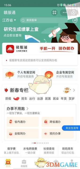 1、通过手机“赣服通”APP或“支付宝”APP的“赣服通”小程序,进入赣服通会自动定位你所在的位置,