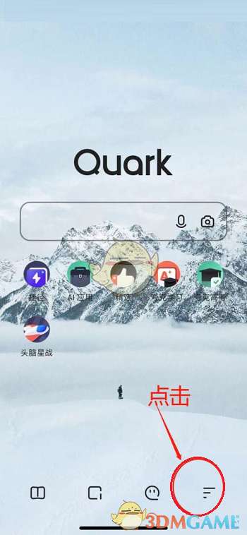 1、进入夸克浏览器,打开右下角的菜单(如图所示)。