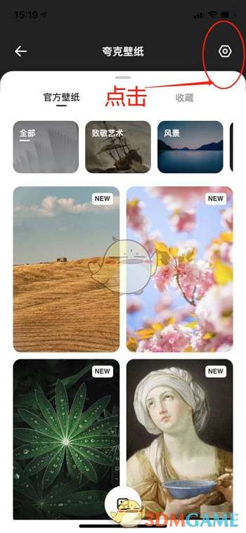 4、进入壁纸页面后,点击右上角的设置按钮(如图所示)。