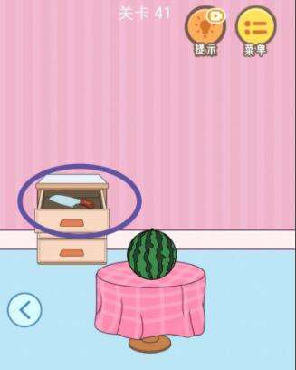 右侧场景的桌子上放着【西瓜】,抽屉里有【水果刀】。