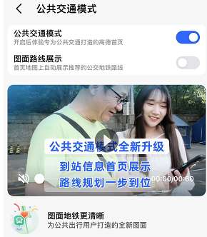 2、然后在这就能看到公共交通模式,点击右侧按钮。