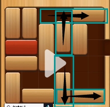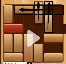 第一步:最后一排的积木往右边推、第四列的分别往下推往上推、第一排的往右边推:
