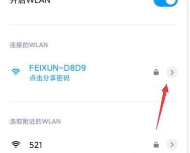 第三步:如果出现无法忘记的问题,可以直接在手机中的WIFI管理中找到要忘记的密码(如图所示)。