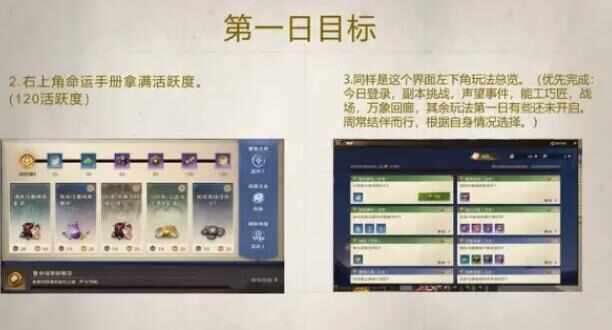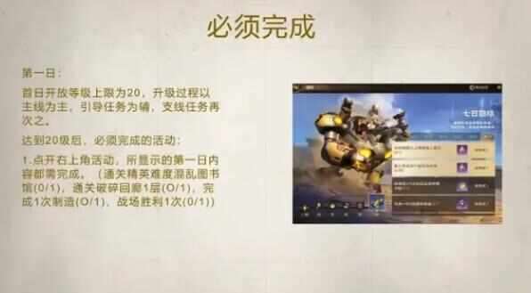 本攻略旨在为玩家提供前3天每日达成目标的指引,给玩家展示大致需要做什么,以及每日能达到的平均装等,铭石能量,地图探索,副职业等级等。