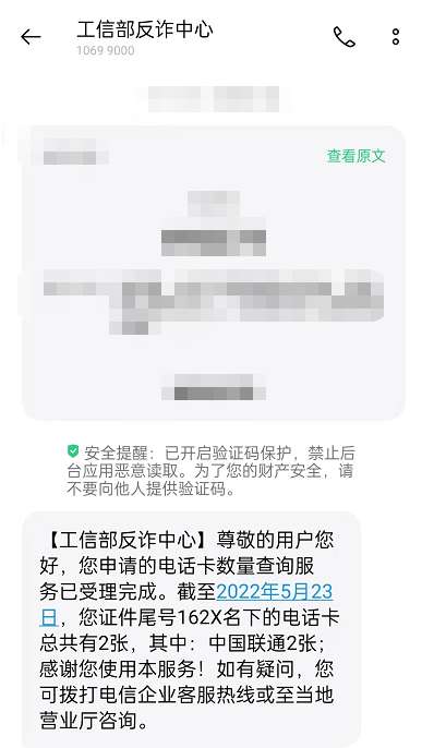 5、最后我们耐心等待反诈中心发来的短信,就能了解自己名下有多少张电话卡数量了。