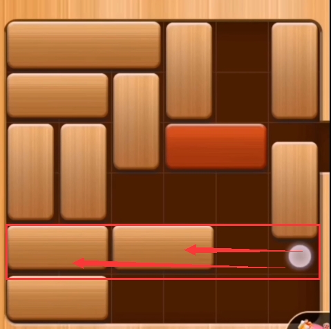 第一步:将第五排的两个横的积木均往左边推(如图:)