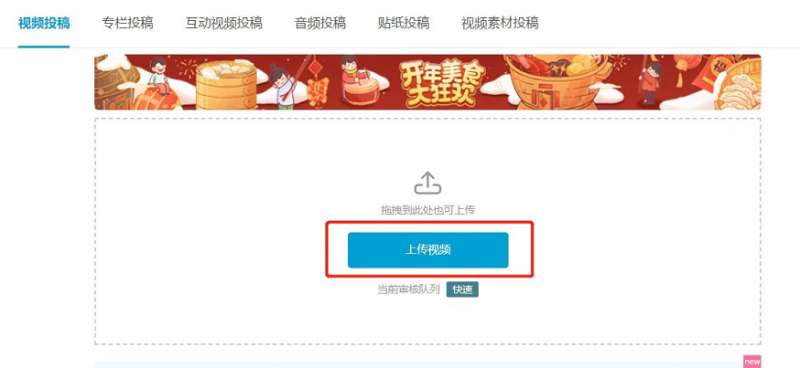 1、目前此功能只能在PC端发布,我们点击视频投稿,选择【上传视频】。
