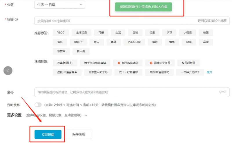 5、看到上方的提示后,选择【立即投稿】就可以了。